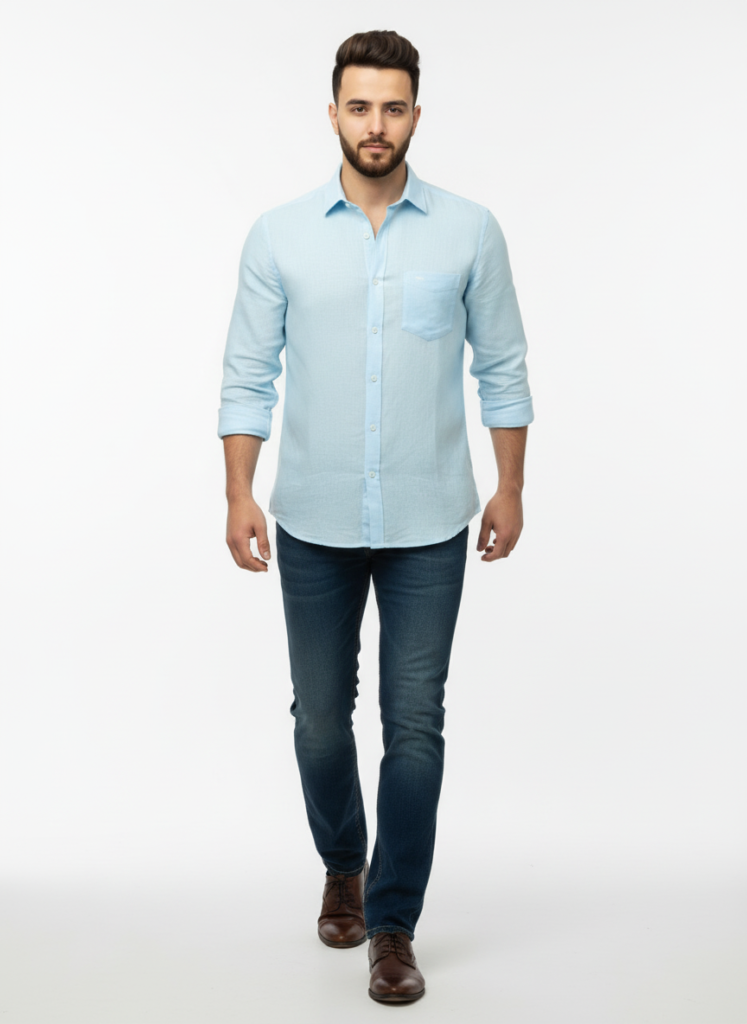 Blue Leafy Floral Cotton Shirt – Elegant Casualwear for Men