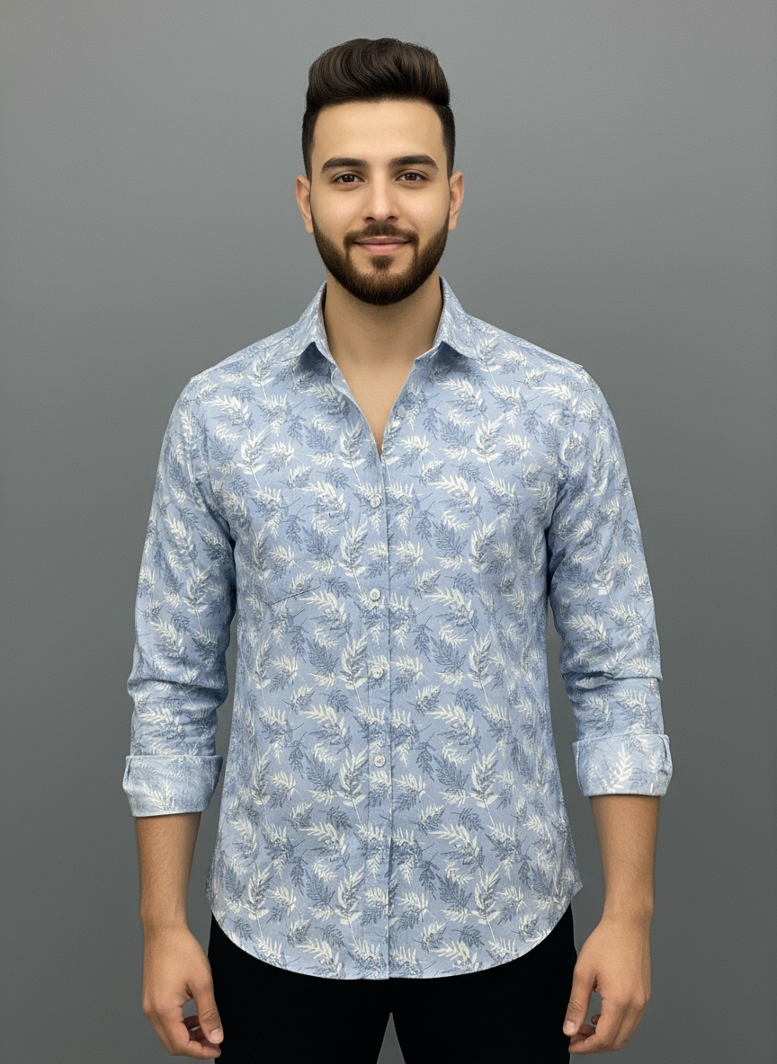 Light Blue Floral Print Cotton Shirt for Men Original price was: ₹2,399.00.Current price is: ₹799.00.