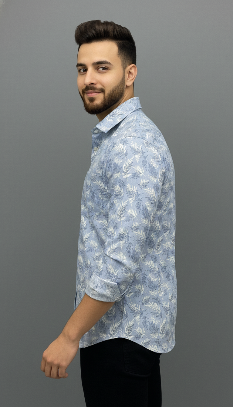Be the first to review “Light Blue Floral Print Cotton Shirt for Men”