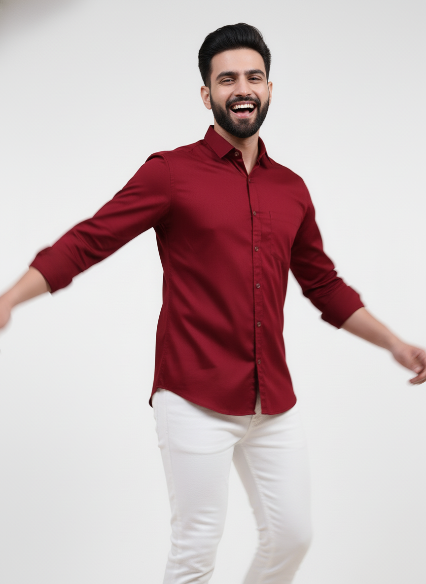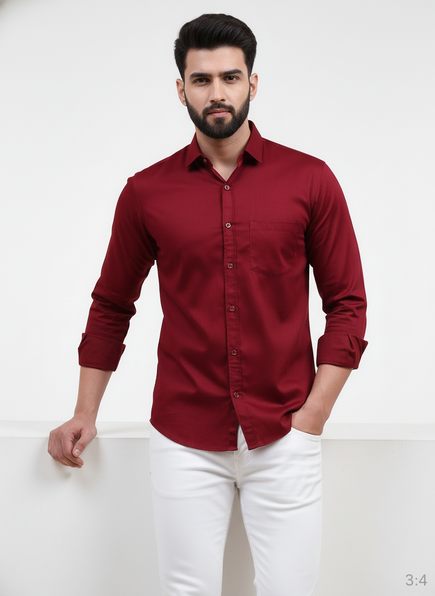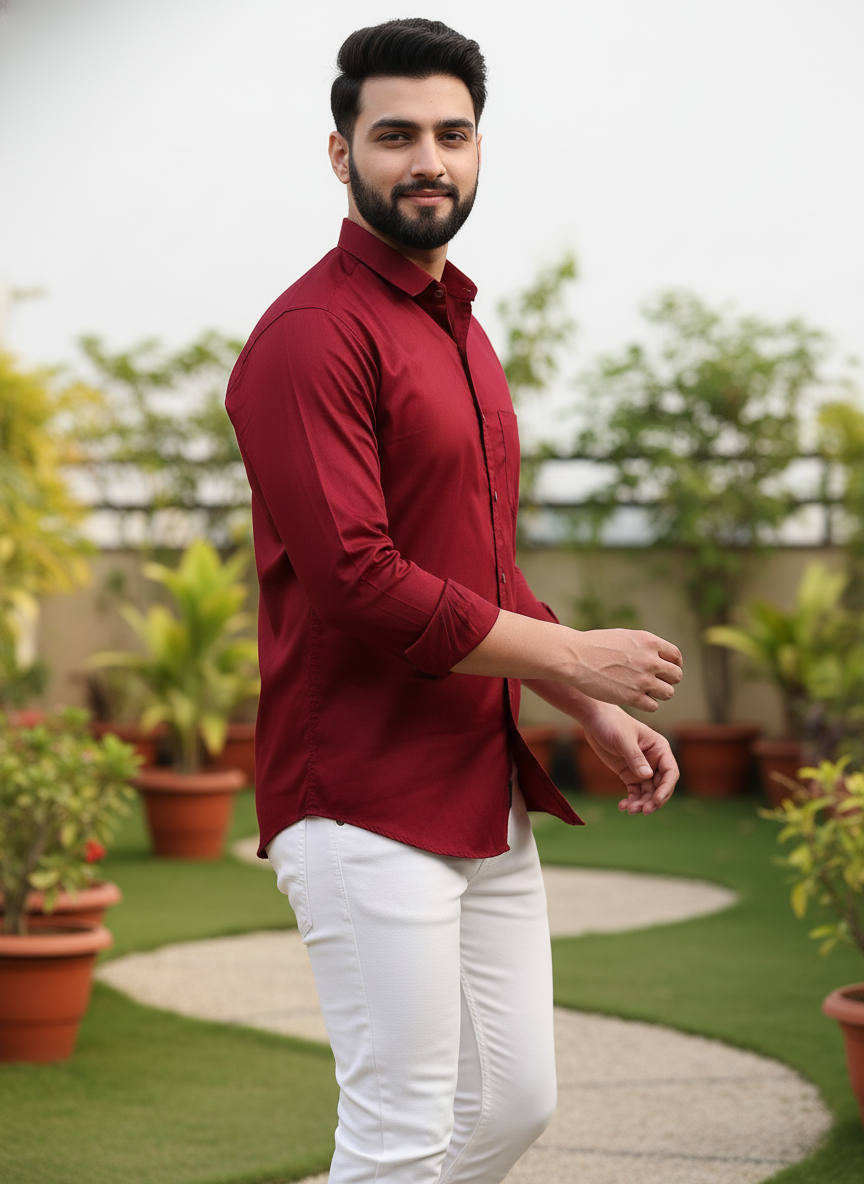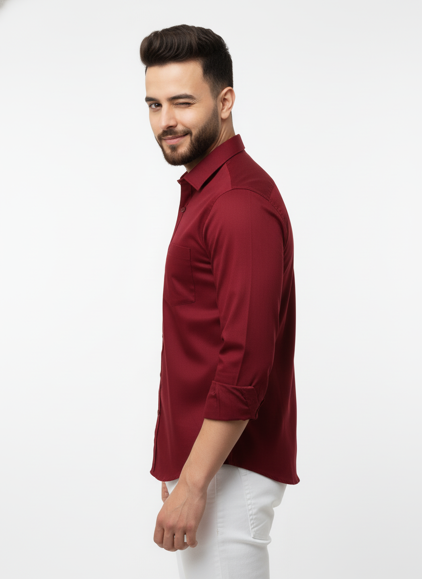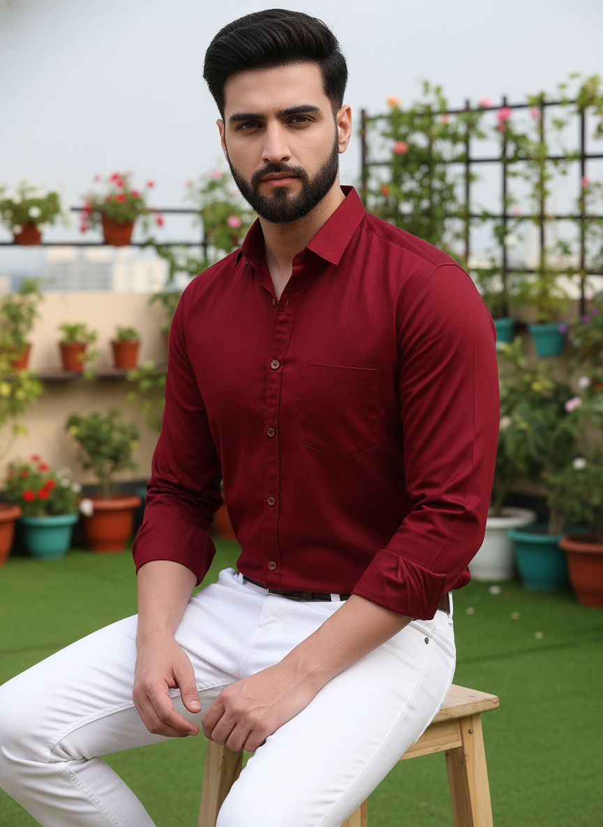 PSI Maroon Cotton Shirt for Men – Premium Regular Fit Full Sleeve
