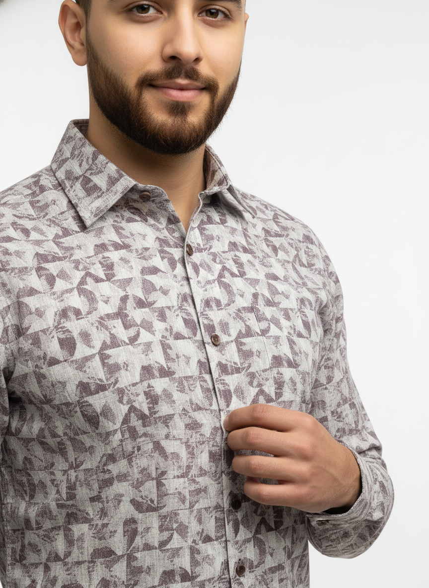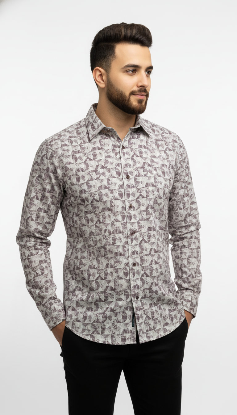 This printed shirt for men pairs easily with jeans, chinos, and trousers. Also, the soft color tones and balanced pattern create a stylish look for meetings, outings, dinners, and travel. Whether you want a smart casual look or a relaxed weekend outfit, this printed shirt works perfectly.