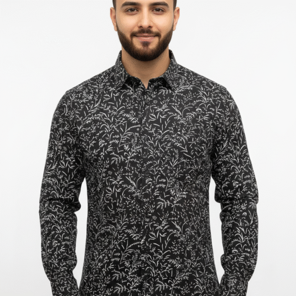 Its monochrome grey-black tone makes it extremely versatile — easily pair it with black trousers, jeans, or chinos for a smart and stylish outfit. Ideal for both formal and casual wear, this shirt becomes a must-have wardrobe essential.