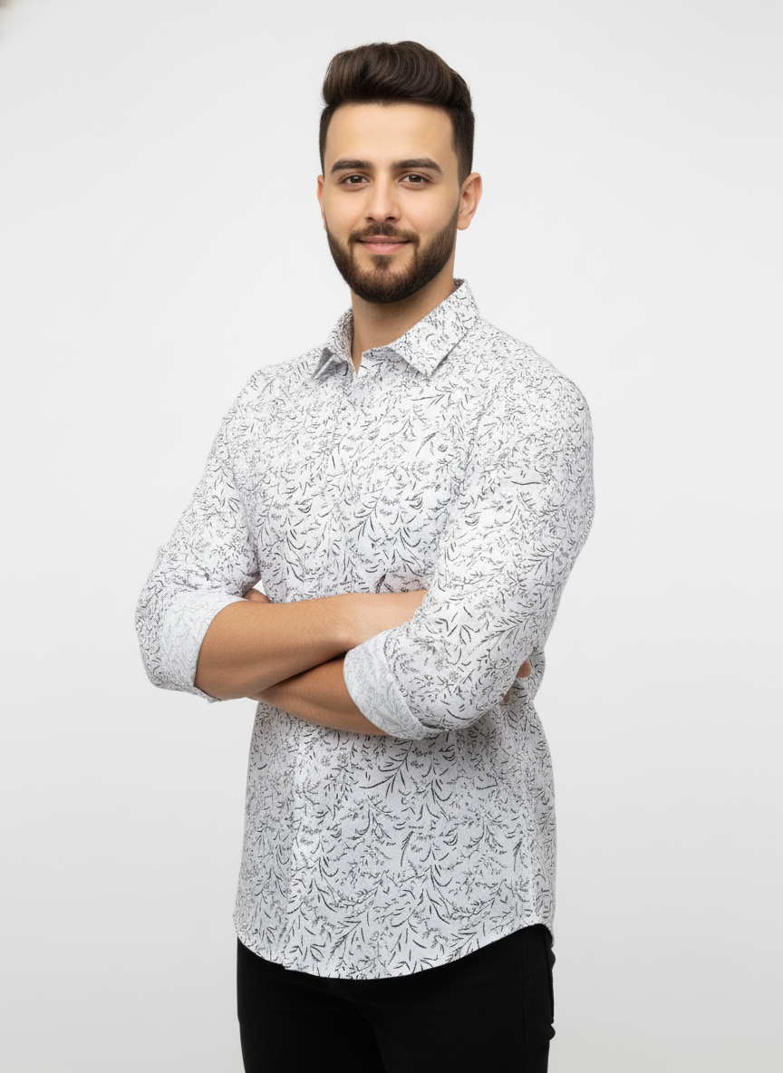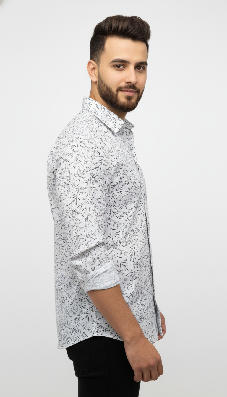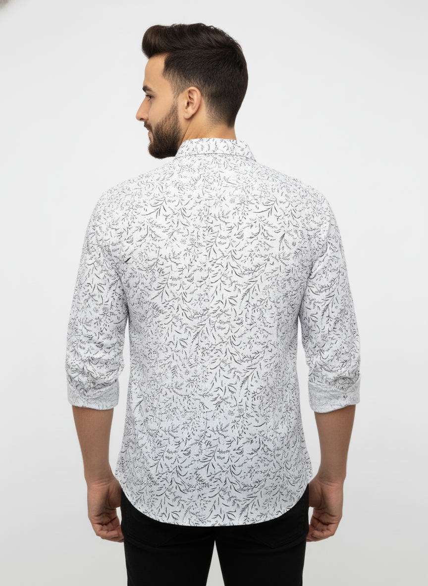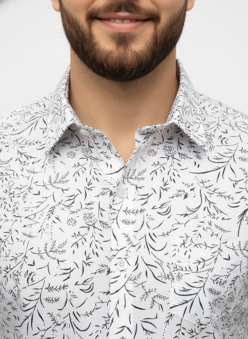 Blue Leafy Floral Cotton Shirt – Elegant Casualwear for Men