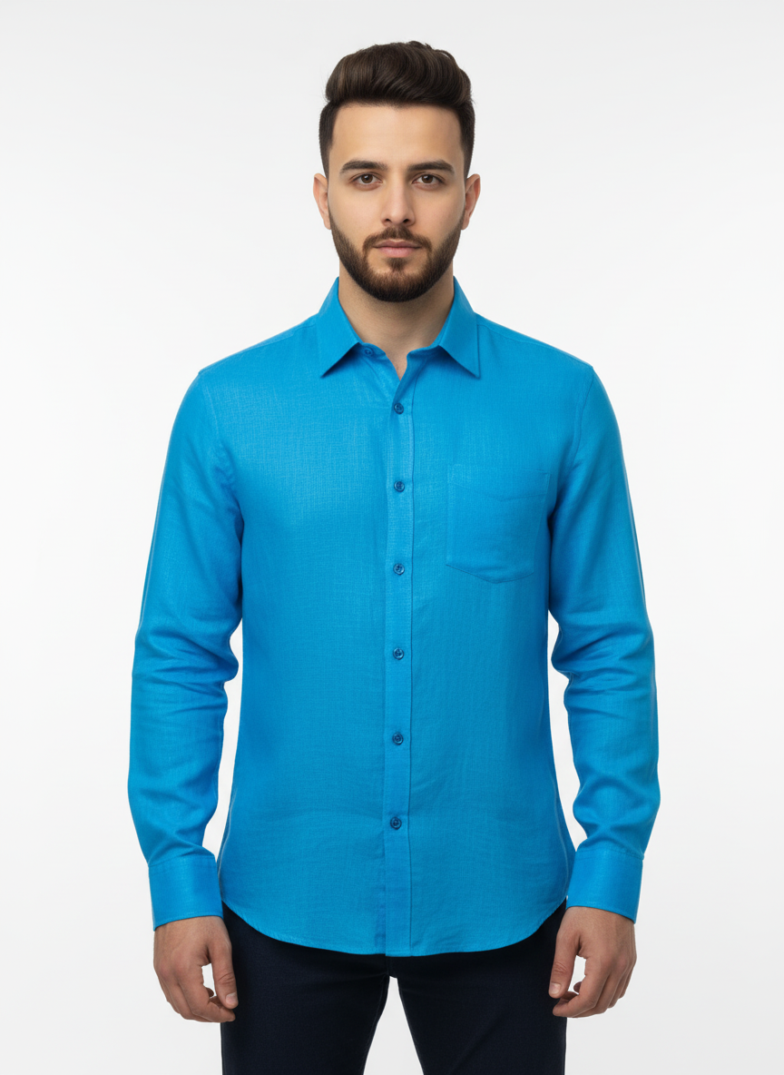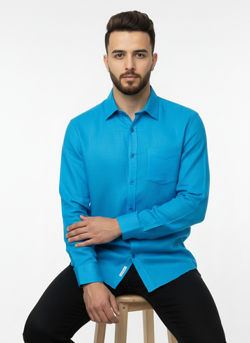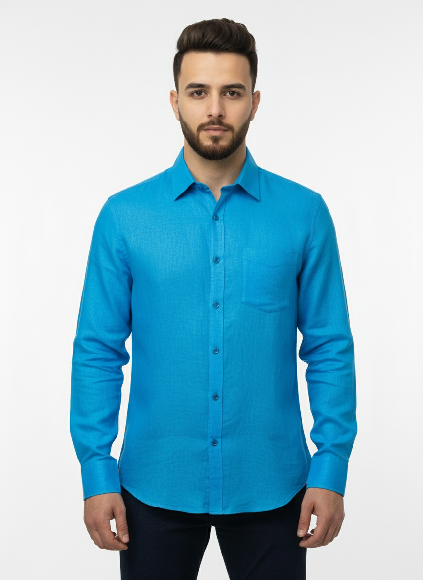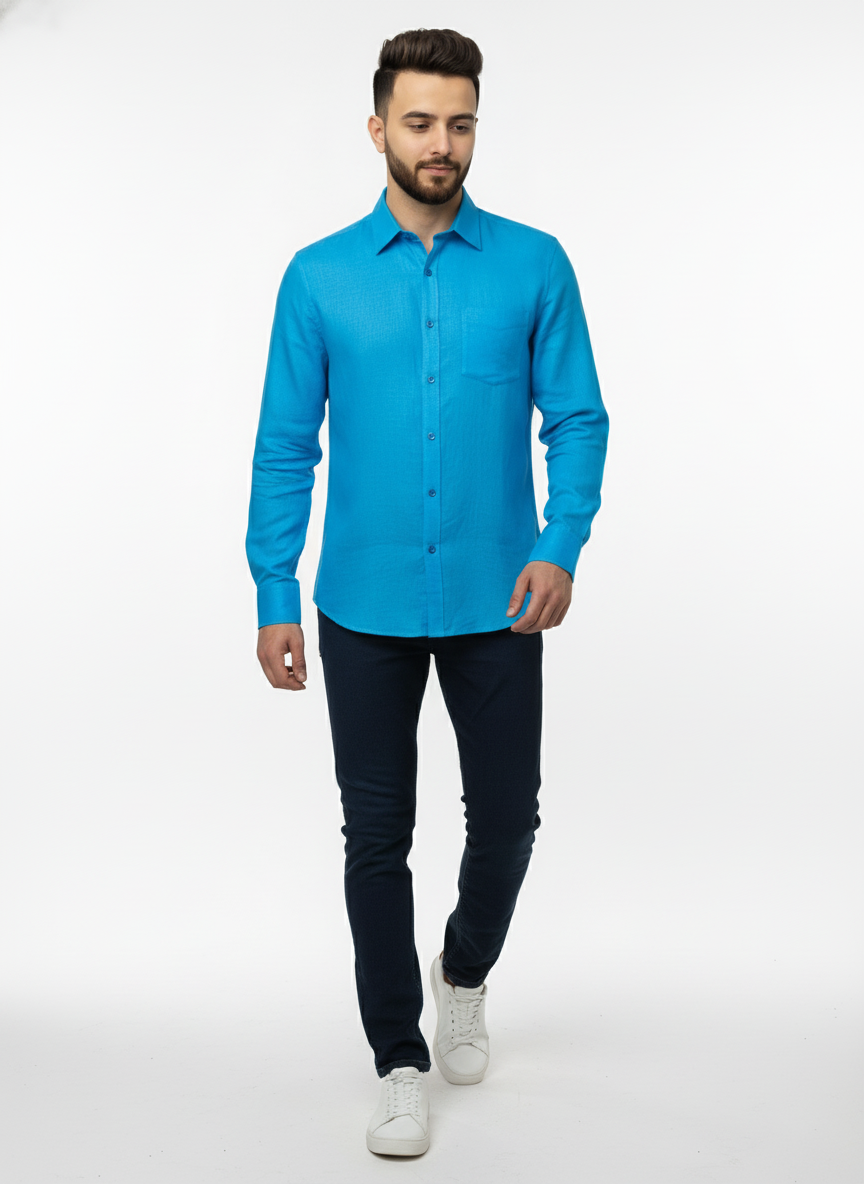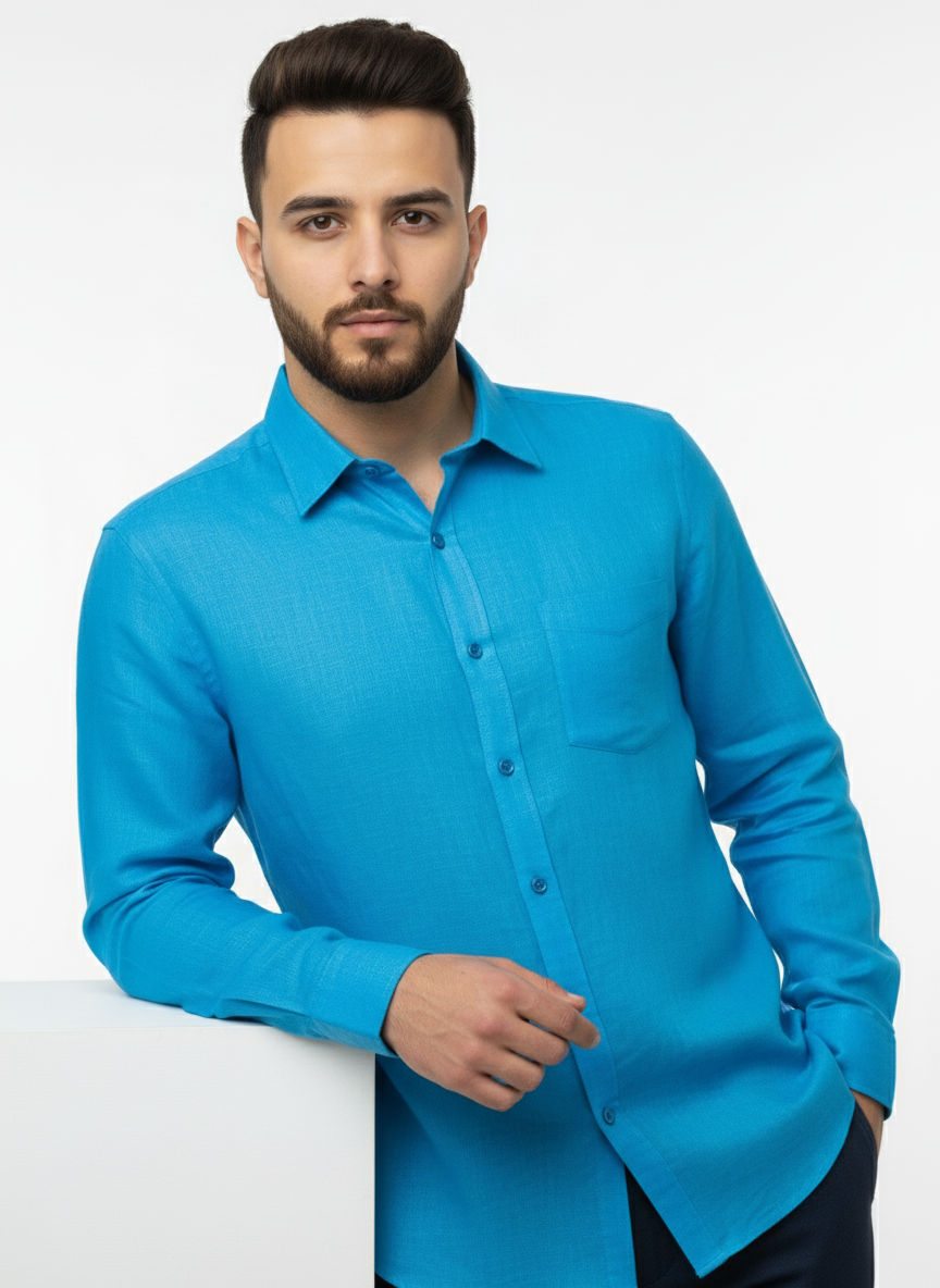 Blue Leafy Floral Cotton Shirt – Elegant Casualwear for Men