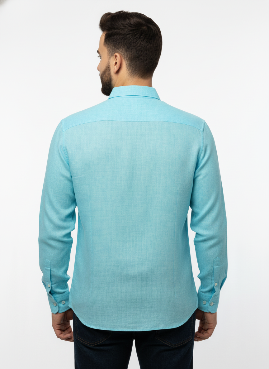 PSI Men’s Pure Linen Sky Blue Premium Full Sleeve Shirt