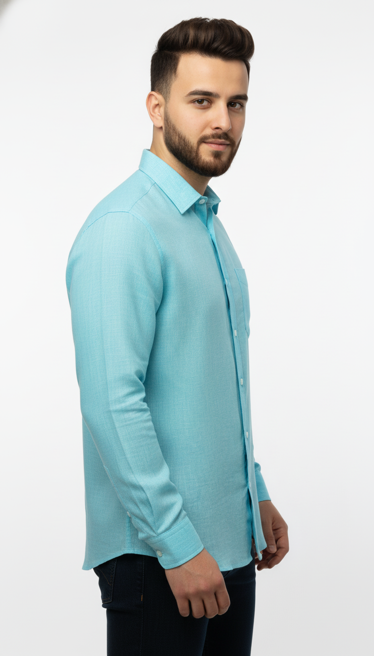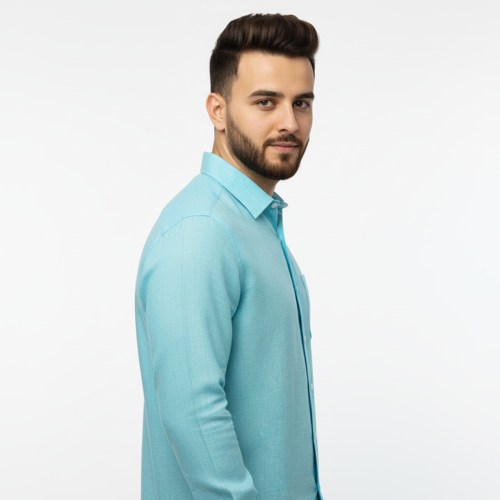 The Pure Linen Sky Blue Shirt gives you a soft, fresh, and modern look for everyday wear. This shirt feels cool on the skin because linen allows excellent airflow. As a result, it stays comfortable during hot weather, travel days, and long working hours. The sky blue shade gives a clean and calm appearance that suits all skin tones.