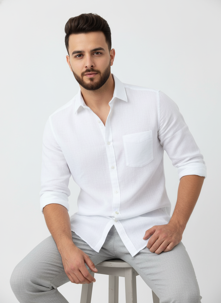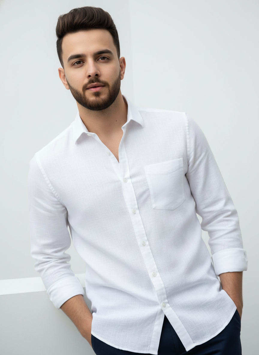 Pure Linen White Shirt For Men