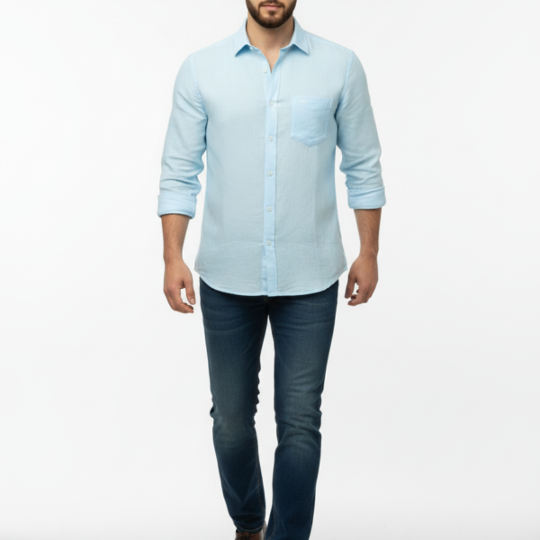 Blue Leafy Floral Cotton Shirt – Elegant Casualwear for Men