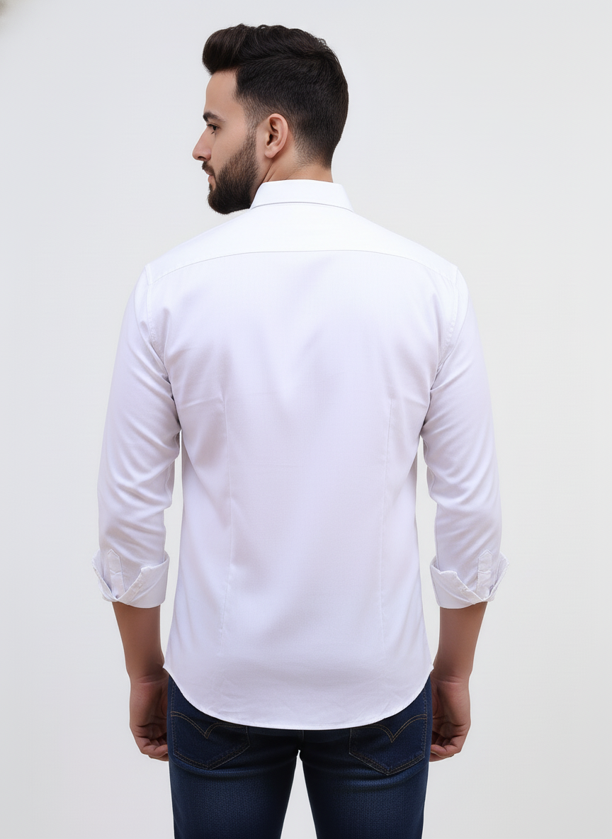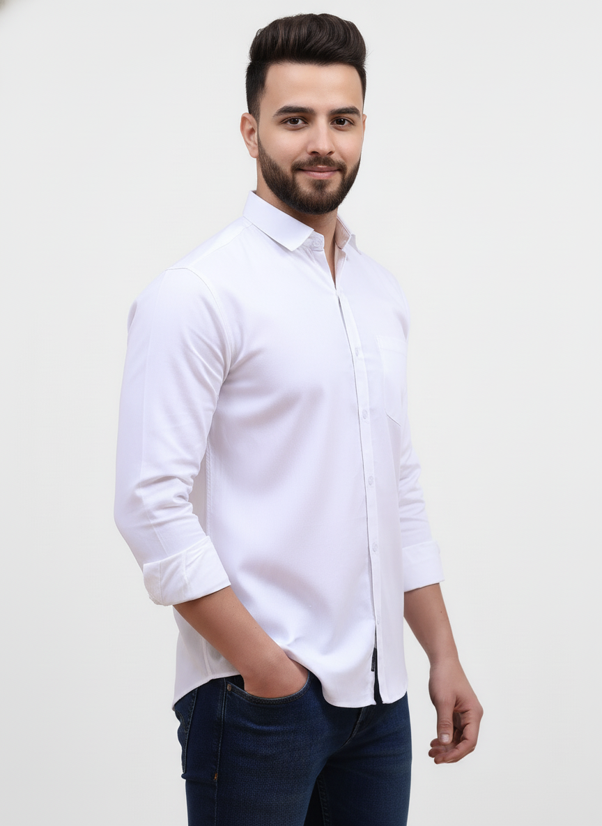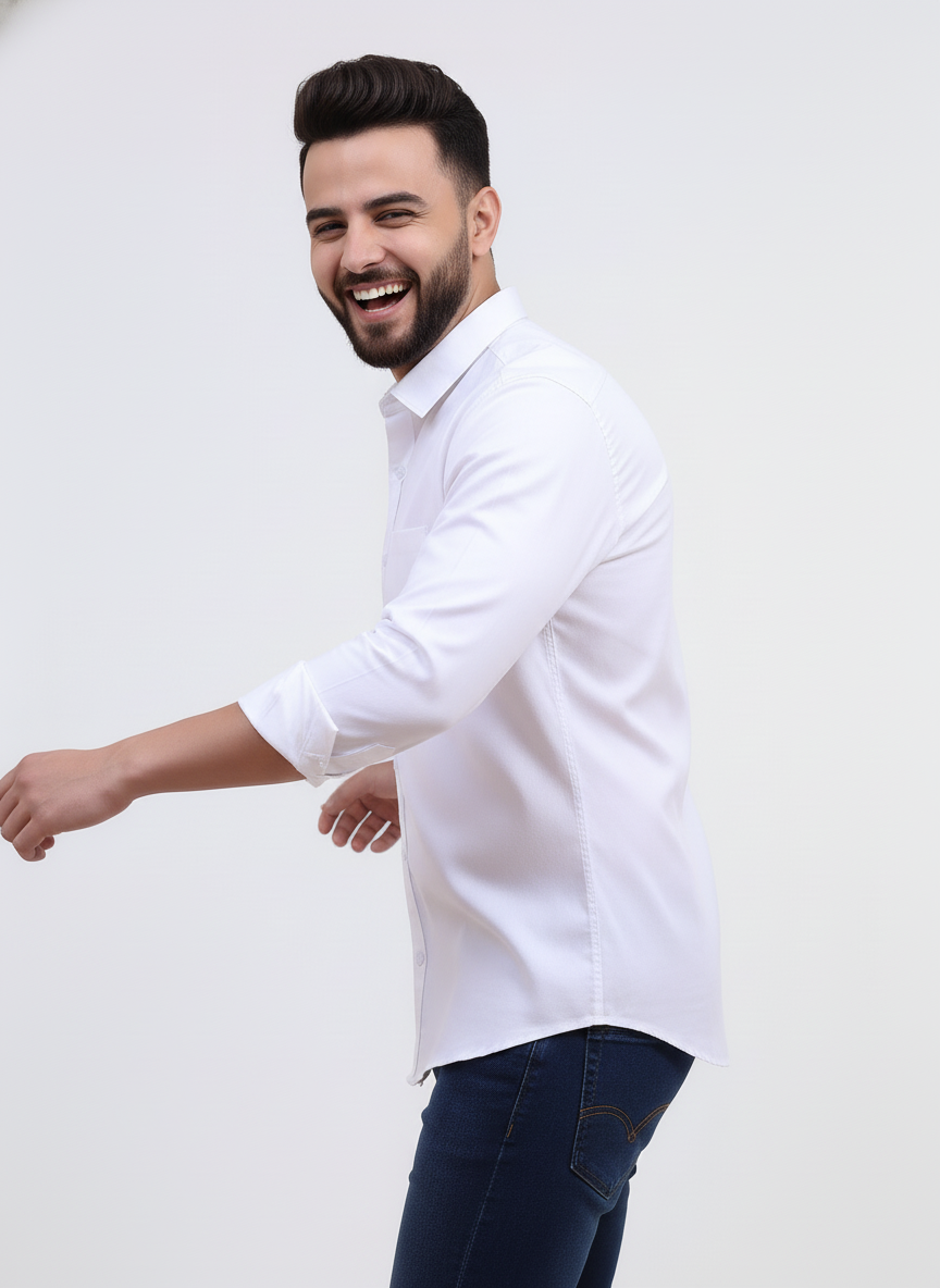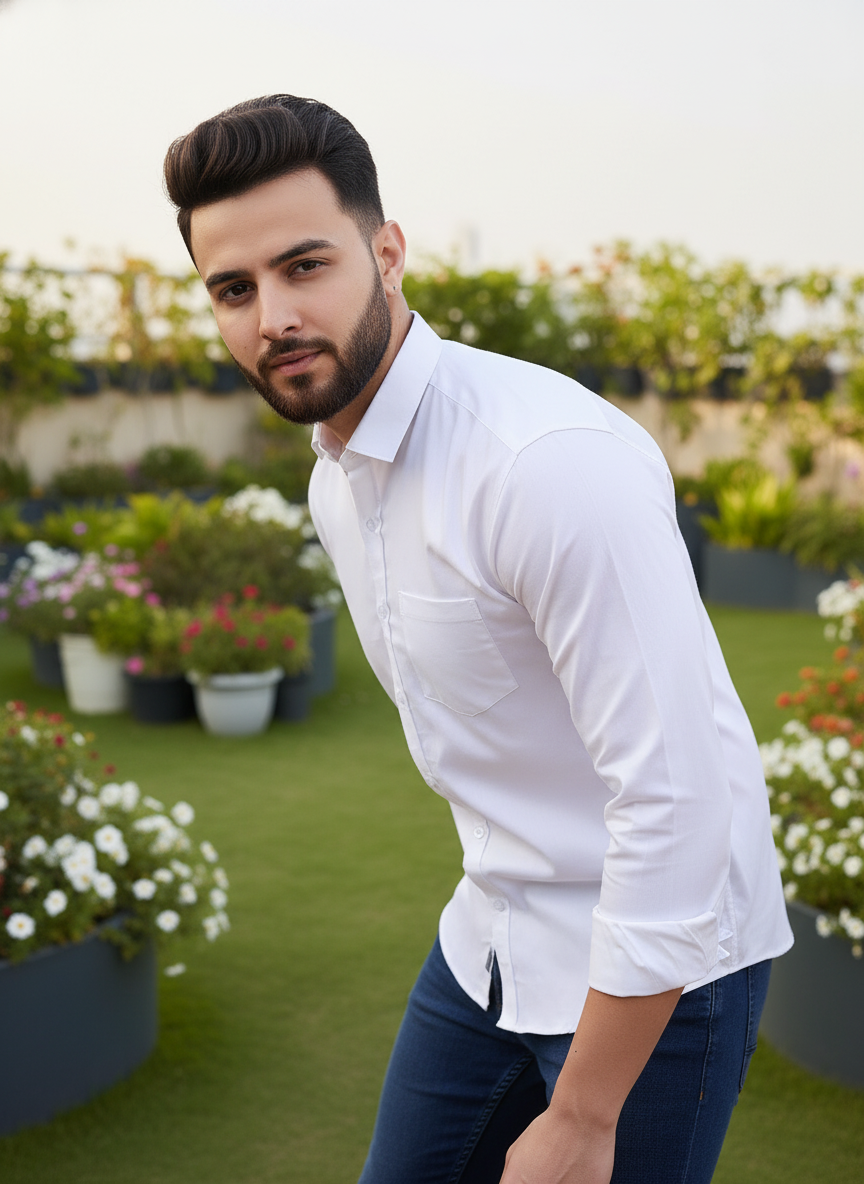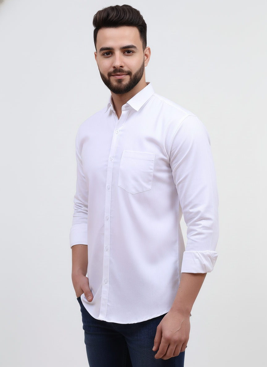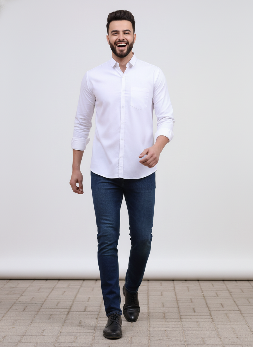 This white shirt for daily wear pairs beautifully with jeans, chinos, or trousers. Also, the fresh white color gives a smart and modern appearance for office, meetings, dinners, and outings. The simple, elegant look makes it suitable for men of all ages.